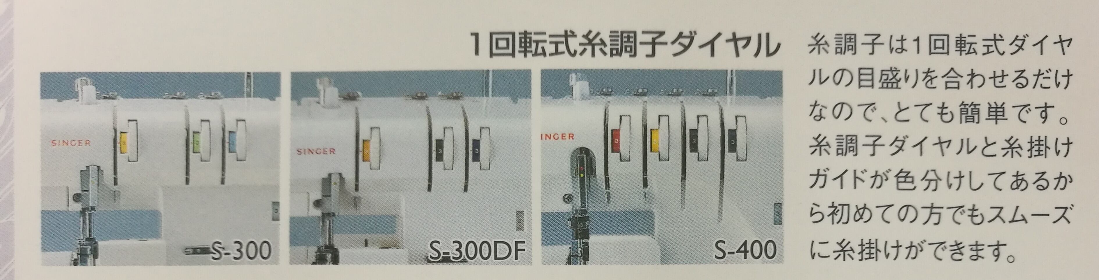 糸調子は1回転式ダイヤルのメモリを合わせるだけなので、とても簡単です。糸調子ダイヤルと糸掛けガイドが色分けしてあるから初めての方でもスムーズに糸掛けができます。