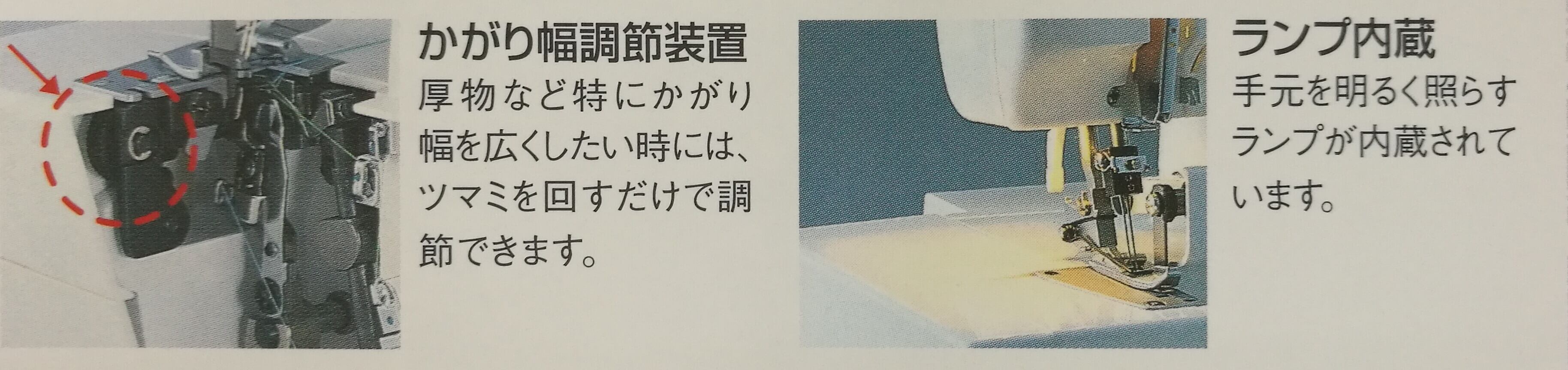 厚物など特にかがり幅を広くしたいときには、ツマミを回すだけで調節できます。