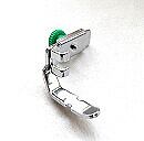 家庭用ミシンでジッパーを縫い付けるときに使用します。押さえの後ろの緑のネジで布を押エる部分が左右に動かせます。